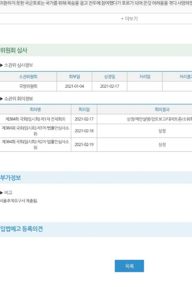 국군포로 대우에 관한정부입법 일부 개정안이 2월17~19일 3일간 국회 국방위에서 우리법안이 심의를 했습니다.