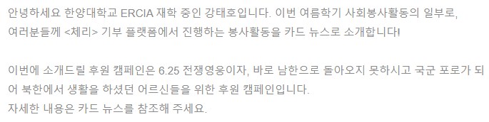 [사단법인 따뜻한 하루] 6·25 국군 포로, 지금이라도 보답해야 합니다 with. 체리 기부 플랫폼
